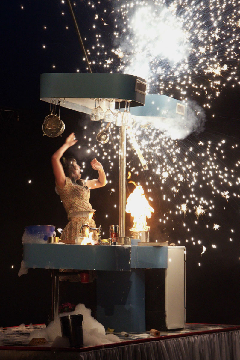 La cuisinière est un duel, celui d’une femme et de son outil de travail. Deux homonymes pour un dialogue théâtral qui se termine en pugilat. L’univers de la cuisine n’est plus un décor, c’est un organisme vivant accroché au quotidien de sa propriétaire. Qui contrôle qui ? Qui maîtrise qui ? Qui influence qui ? La jeune femme va devoir se battre pour apprivoiser cette modernité malicieuse.